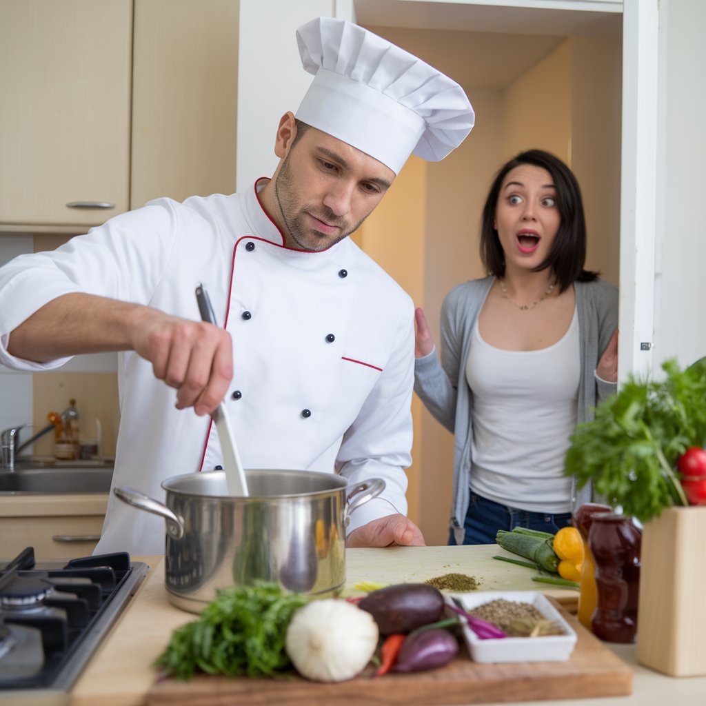 Оля застыла в дверях кухни, не веря своим глазам. Её муж Михаил, человек, который за пятнадцать лет брака прибегал к плите разве что для разогрева вчерашнего борща, теперь стоял перед ней в фартуке, сосредоточенно помешивая что-то в кастрюле. На столе лежали нарезанные овощи, зелень, а главное – даже специи были аккуратно расставлены.