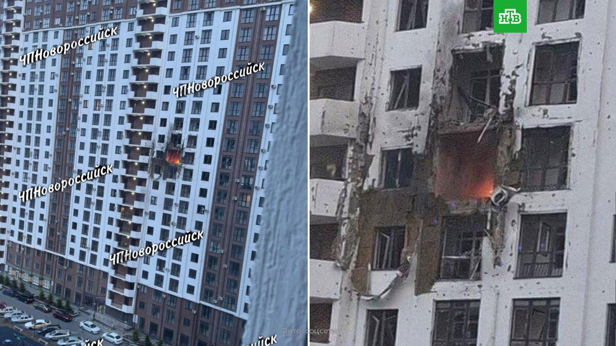 [ Смотреть видео на сайте НТВ ] По словам очевидцев, украинский дрон врезался в многоэтажный жилой комплекс в Новороссийске. Жители Новороссийска сообщают, что украинский дрон врезался в жилой комплекс «Аврора», после чего начался пожар. Повреждения, предположительно, получили несколько квартир. Также СМИ сообщают, что еще один БПЛА врезался в ЖК «Кристалл-5» на Суворовской улице Новороссийска. Подтверждения или опровержения этой информации из официальных источников пока нет. Данных о возможных пострадавших не поступало. Глава Новороссийска Андрей Кравченко распространил в соцсетях новое предупреждение об опасности атак БПЛА. До этого он сообщал, что атаку БПЛА и безэкипажных катеров отражают в акватории Новороссийска. Этой же ночью врио губернатора Ростовской области рассказал, что в поселке Целина после падения обломков БПЛА загорелись крыши двух домов, пострадавших нет. По материалам: Shot, Telegram-канал Андрея Кравченко. [ Смотреть видео на сайте НТВ ]