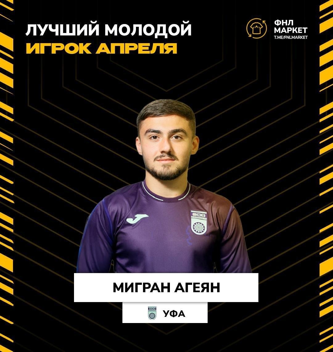 Форвард ФК «Уфа» Мигран Агеян признан лучшим молодым игроком апреля в Мелбет-Первой лиге. Об этом сообщила пресс-служба уфимской команды. 21-летний футболист в матче с «Аланией» отметился голевой передачей, а в игре с «Шинником» забил мяч, который стал победным. Мигран Агеян является воспитанником клуба «Уфа». В основную команду перешел 1 июля 2023 года. В текущем сезоне нападающий сыграл 29 матчей и отметился 3 голами и 3 результативными передачами. Ранее «Башинформ» сообщал, что футбольный клуб «Уфа» обыграл ярославский «Шинник». Следующий матч наша команда проведёт вновь дома 4 мая с ФК «Нефтехимик» из Нижнекамска.