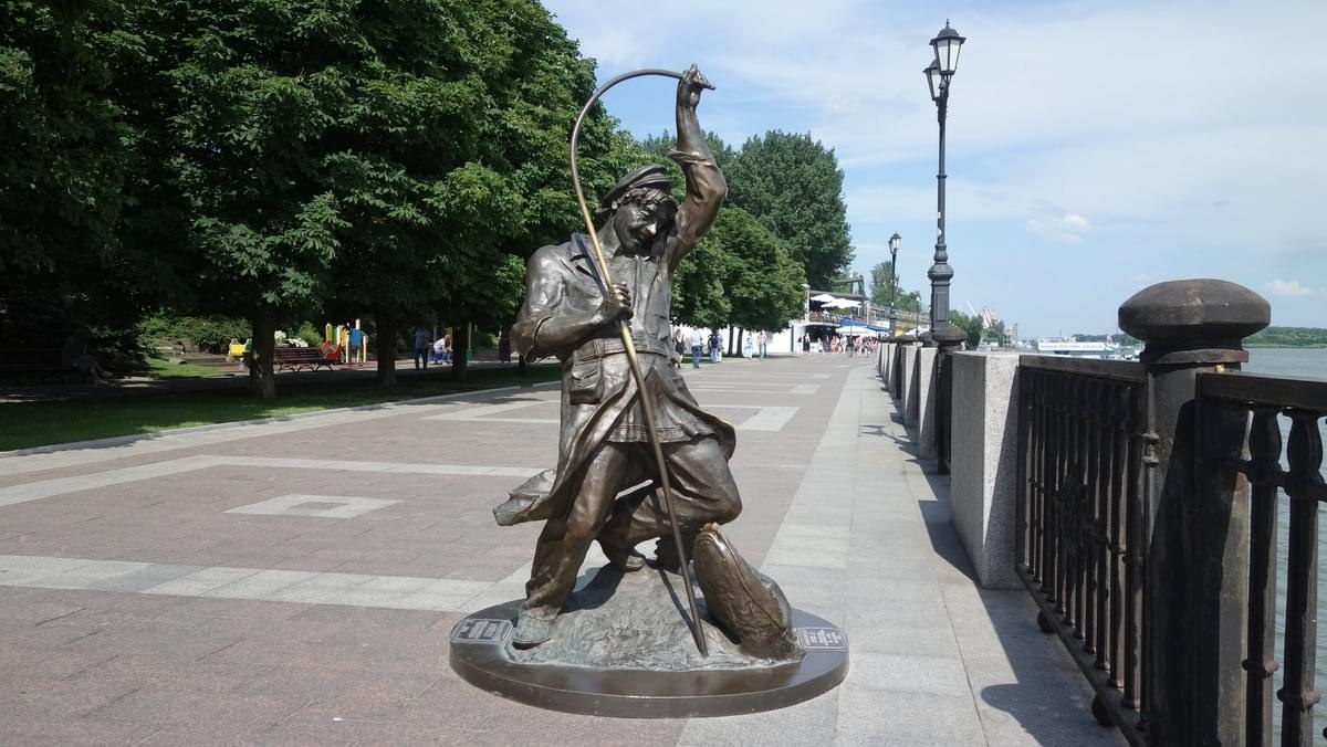 Рыбак на набережной в городе Ростов-на-Дону