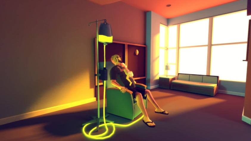 Графика представлена стилем лоу-поли с насыщенной цветовой палитрой. Больничные палаты залиты желтым светом, аппарат химиотерапии сияет зеленью. Некоторый текст динамично показан в объемном интерфейсе, липнущем к окружению. Лицо Джоэла не имеет бровей и складок, а пересечение полигонов создает чуть ли не болезненную тень. Анимация очень простая, мимика ни у кого не имеется по понятным причинам. «Дешево и сердито» звучит не как критика, а выбор под собственные возможности. Стиль лоу-поли не только задет вкусный стиль без высоких затрат, но и делает историю более общей для всякого человека. Это не проблема конкретной семьи – это человеческая трагедия