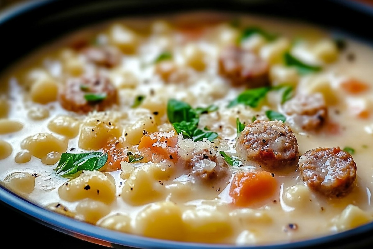 Создано на основе запроса: | Title: Creamy Parmesan Italian Sausage Ditalini Soup | STYLE: Close-up Shot right view | EMOTION: realistic as