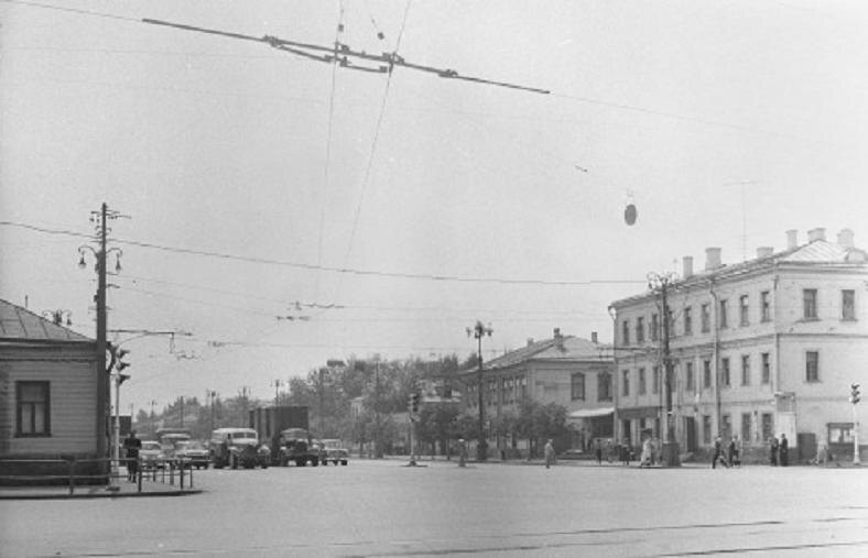 Давайте совершим очередное путешествие сквозь время, прогуляемся по улицам родного города, посмотрим, какой была жизнь в шестидесятых и что изменилось за прошедшие десятилетия. Поехали! ... Вид от Люсиновской улицы на Большую Тульскую, уходящую к Варшавскому шоссе. Обратите внимание на ширину улицы, зелень и застройку. Фото 1966 года, Юрий Артамонов Вид с этой точки за прошедшие шестьдесят лет заметно изменился. Проезжая часть стала шире, зелень исчезла, а старые дома снесли. Справа от дороги, ещё в советские годы, построили огромный дом-корабль, а слева, уже в наши дни, построили торговый комплекс Недалеко от Большой Тульской, на Даниловском валу, располагается Данилов монастырь. В те годы по назначению он не использовался, а вместо надвратной иконы висел герб СССР. Фото 1967 года В восьмидесятые годы монастырь начали передавать церкви и в нём разместилась резиденция Патриарха. Сейчас монастырь и всех храмы на его территории полностью восстановлены, а над вратами снова можно увидеть л