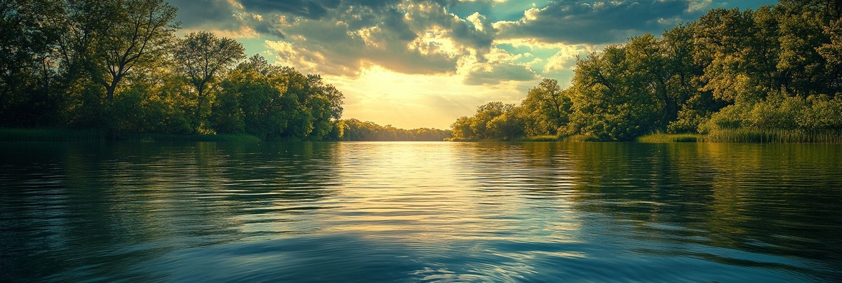 Создано на основе запроса: photograph of a beatiful bass fishing lake from low over the water