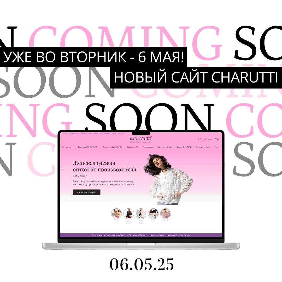 Начинаем день с отличных новостей! Уже 6 мая ‼️ Мы запускаем обновлённый сайт CHARUTTI. И это шаг вперёд, сделанный вместе с вами. За эти годы вы стали более продвинутыми пользователями👩💻Каждый ваш комментарий, вопрос, идея стали опорой при создании нового дизайна. Спасибо вам! Мы по-настоящему любим наш сайт таким, каким он был все эти годы, но настало время сделать CHARUTTI более современным и удобным ресурсом. Особенно важным шагом стало обновление мобильной версии📲Теперь есть адаптив под любые экраны, и пользоваться им с телефона будет так же комфортно, как с компьютера. Оформляйте заказы, скачивайте фото, работайте с контентом легко и быстро, где бы вы ни были. Обязательно зайдите 6 мая на CHARUTTI.RU. Потестируйте и поделитесь с нами впечатлениями — ваша обратная связь, как всегда, бесценна!