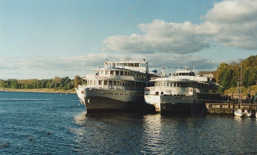 ⛴️ Пассажирские теплоходы Яков Свердлов и Фёдор Кибальник в Угличе⚓️. 📅 - 1997 год. (фото из семейного архива автора) За классное 📸 спасибо СЕРЖ👍 #РечнойФлотВолгоград