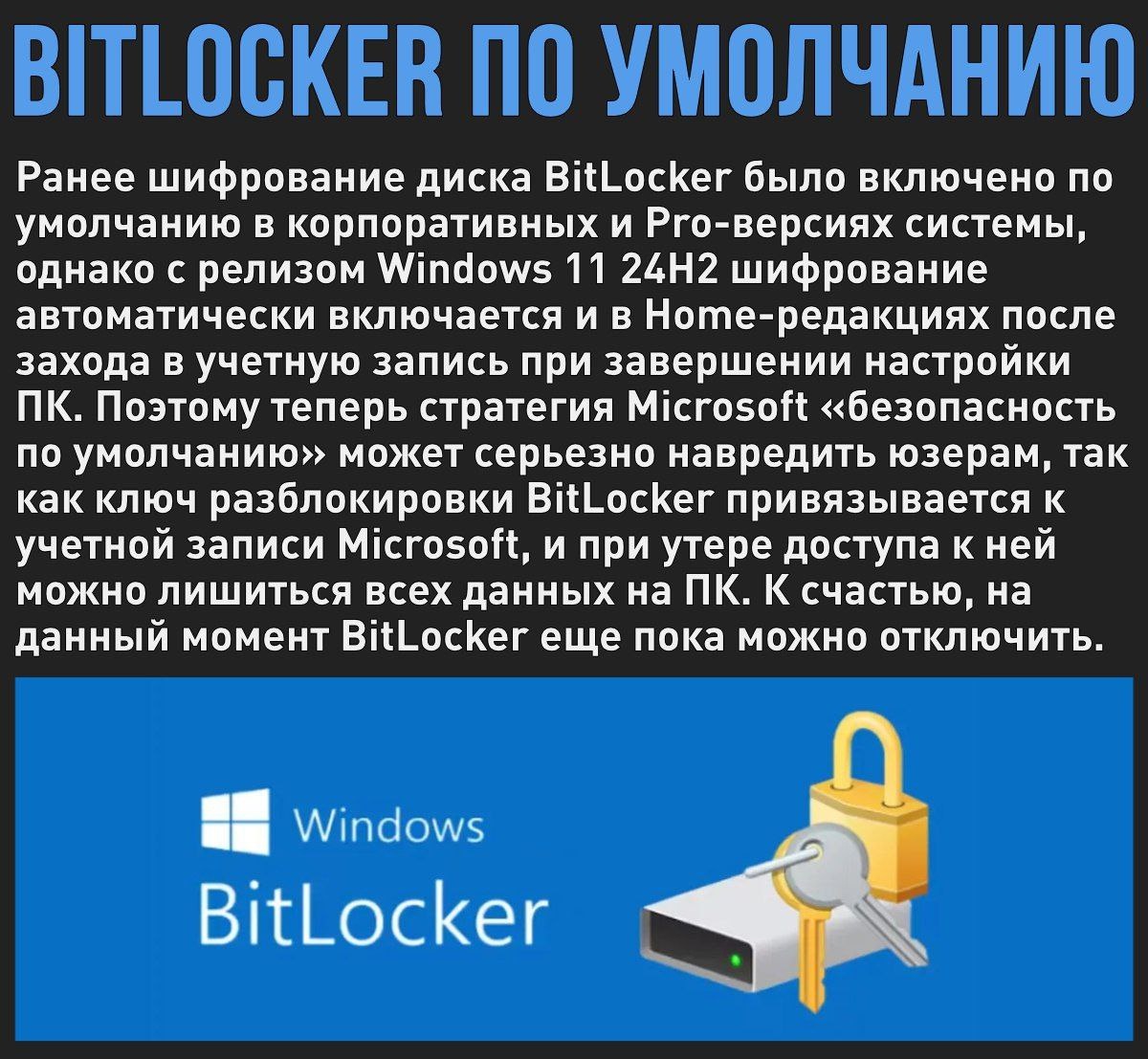 Пользователи windows, вас загоняют в экосистему мастая, ваши данные перестанут вам принадлежать. Задумайтесь нужно ли пользоваться системой разработчик которой вычеркнул Россию из своей карты мира? Риски продолжают расти с каждым обровлением... Мы ( я и Линукс) ждем вас на острове цифровой свободы!