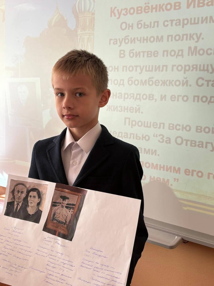 Расскажи о своем герое В нашей школе стартовала общегородская акция «Расскажи о своем герое». Ребята рассказывают одноклассникам о героях своей семьи, о тех, кто воевал на фронте, трудился в тылу и делал все для Великой Победы. Очень важно, чтобы подрастающее поколение не забывало тот подвиг и помнило, какой ценой далась Победа. Светлана Николаевна Ставцева, советник директора по воспитанию #Победа80 #Расскажиосвоемгерое #ДОНМ #ШколыКолледдиМосквы #Школа1358