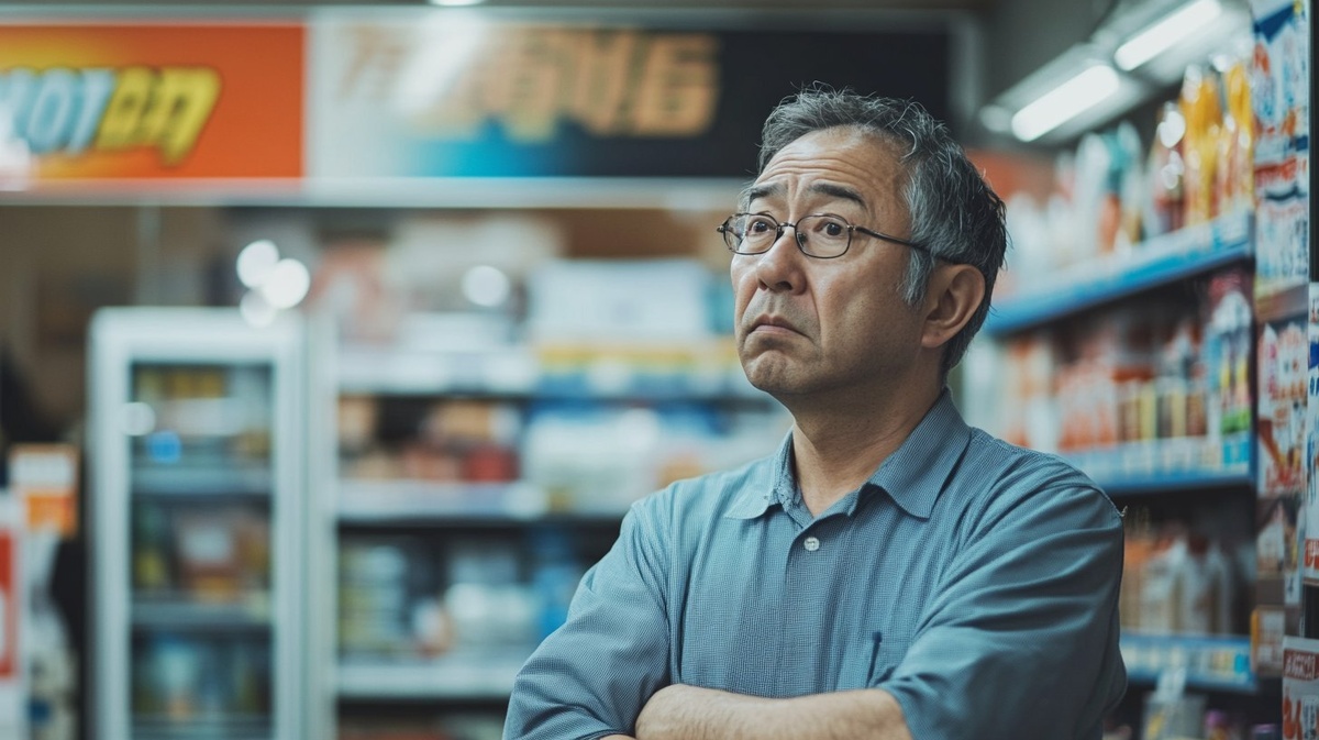 Создано на основе запроса: A realistic photo of a middle-aged Japanese man in his 50s wearing plain clothes, nervously glancing around inside a convenience store, 16:9 aspect ratio --- Автоперевод: Реалистичная фотография японского мужчины средних лет в его 50-х годах в простой одежде, нервно оглядываясь в магазин, соотношение сторон 16: 9 Красиво выглядит? 🤔 https://dzen.ru/id/65c0c65c86e4f837c27b24d7 #ИИ #AI #нейросеть #midjourney #art