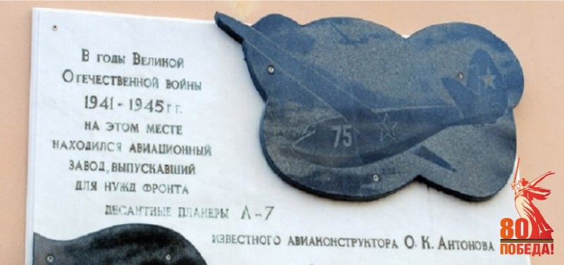 Город трудовой доблести: Завод № 241 Осенью 1941 года в Тюмень прибыли эшелоны с оборудованием завода № 241 и ОКБ № 31 Тушинского завода авиационной промышленности. Они были объединены в завод № 241. Главной продукцией предприятия стали десантные планеры А-7 конструкции Олега Константиновича Антонова. Завод расположился сразу в нескольких городских зданиях. В начале 1942 года обеспеченность кадрами составляла всего 11,5%. Но, несмотря на это, 5 декабря 1941-го был пущен в строй инструментальный цех, а днём позже – механосборочный. К 1 января 1942 года на заводе действовало 86 станков, на которых работали 185 сотрудников. Завод вновь сосредоточил свои усилия на выпуске десантных планеров. 8 мая 1942-го начался выпуск десантных планеров А-7. Коллектив предприятия за время пребывания в Тюмени выпустил более 600 планеров. Завод работал в нашем городе до 1944 года, а затем был переведён в Саратов и Рязань. На здании по ул. Республики, 52а, где располагался авиационный завод, установл