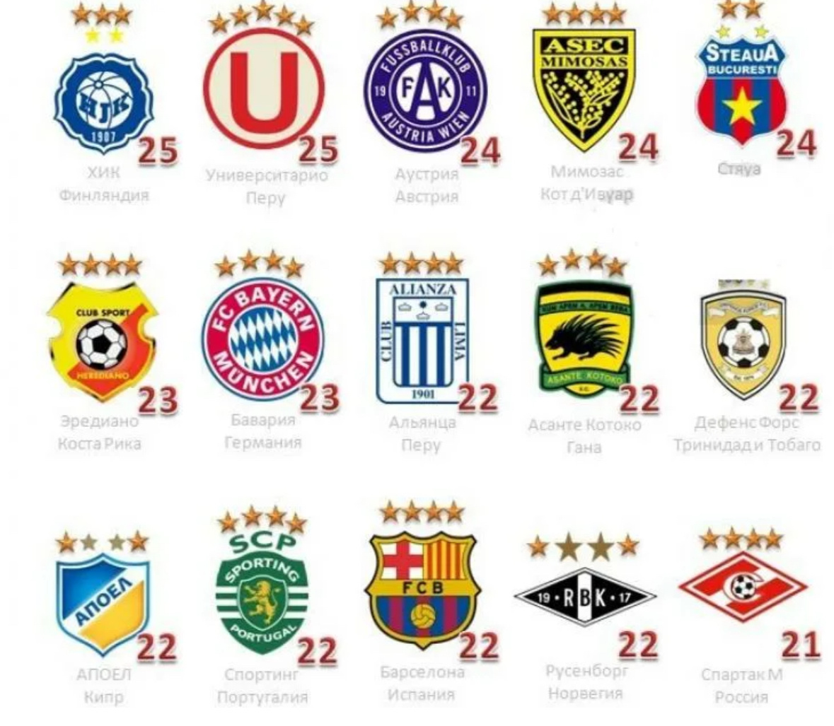 ⭐️Звезды над эмблемами футбольных клубов показывают важные достижения команды, значение которых различается в зависимости от местных традиций. Например: - ⭐️1 звезда обычно обозначает крупный успех (чемпионство или важный международный трофей); - ⭐️2-4 звезды указывают на многократные крупные победы; - ⭐️Особенная звезда может выделять исключительные достижения клуба или личности. Например, в Российской Премьер-Лиге (РПЛ) начиная с 2013 года действует правило, согласно которому 5 чемпионств равняются одной звезде. Таким образом, у команды «Спартак Москва» 22 чемпионства, что составляет 4 звезды.