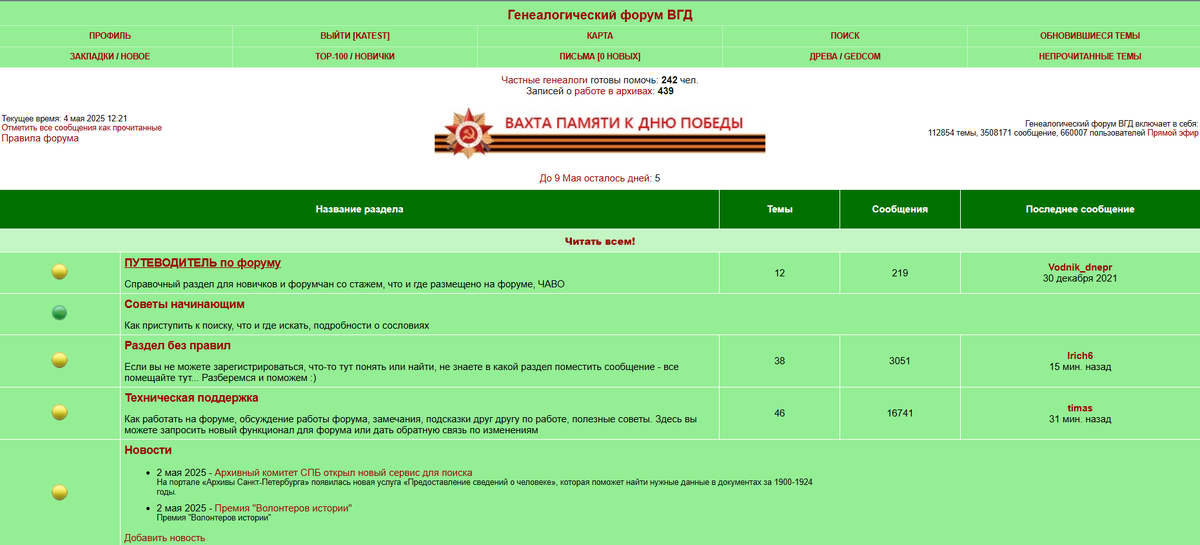 1. Всероссийское генеалогическое древо (ВГД) и его форум - пожалуй, самый популярный ресурс по генеалогии в России. Здесь есть все и обо всем, куча тем, обсуждений, главное, уметь искать.