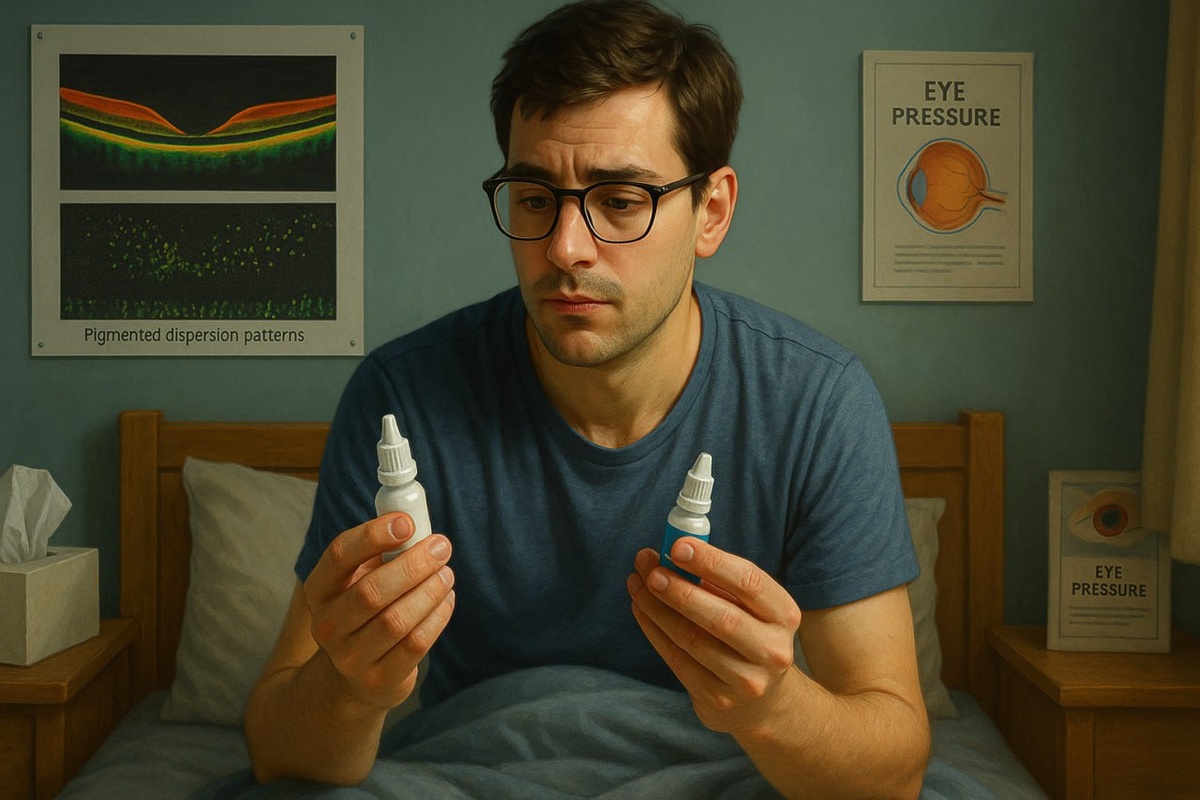 Здравствуйте. При СПД можно ли капать сосудосуживающие капли для носа при насморке? СПД (синдром пигментной дисперсии) — это состояние, при котором пигмент с поверхности радужки освобождается в переднюю камеру. Он оседает на трабекуле, может закупоривать пути оттока — и приводить к повышению внутриглазного давления. У части пациентов развивается пигментная глаукома. Чаще СПД — это молодые, близорукие мужчины с глубокой передней камерой и сильной физической активностью. Именно у них повышенное ВГД может быть спровоцировано мидриазом (расширением зрачка), который приводит к механическому трению радужки о хрусталик. Как связаны сосудосуживающие капли? Капли в нос на основе альфа-адреномиметиков (ксилометазолин, нафазолин и т.п.) могут при системной абсорбции вызывать незначительный мидриаз. А мидриаз при СПД = риск выброса пигмента = возможное повышение ВГД. Но: - Это крайне маловероятно при однократном закапывании в нос. - Тем более если иридотомия уже выполнена - Но если капать со