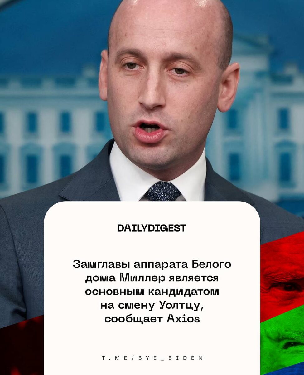 ☑️Главные новости на утро 3 мая: 🔹Замглавы аппарата Белого дома Миллер является основным кандидатом на смену Уолтцу, сообщает Axios. 🔹Администрация Трампа планирует «значительные кадровые сокращения» в ЦРУ и других крупных разведывательных структурах США — The Washington Post. 🔹Бойцы ВСУ примут участие в британском военном шествии в Лондоне 5 мая, посвященном 80-летию победы над нацистской Германией, — Reuters. 🔹Уолтц не согласился на должность посла США в Саудовской Аравии — CBS. 🔹США подготовили новый пакет антироссийских санкций, чтобы усилить давление на РФ в ходе переговоров по урегулированию конфликта на Украине — Reuters. 🔹ВМС США провели испытания гиперзвуковой ракеты морского базирования с неядерной боевой частью. 👍 БайБайден. Подписаться