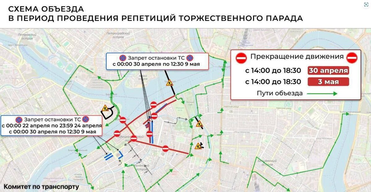 Центр Петербурга вновь перекроют! С 14:00 до 18:30 перекроют движение по части Невского проспекта, а также на прилегающих улицах. В городе вновь пройдёт репетиция Парада Победы.