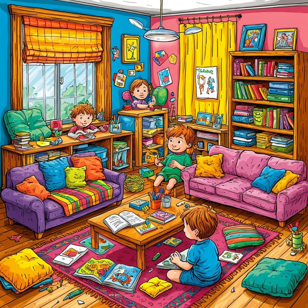 Почему ваша гостиная сегодня станет самым весёлым классом? Представьте школу, где на уроке математики можно прыгать на диване, а за опоздание дают не замечание, а... лишнюю порцию мороженого. Где вместо звонка — мамин смех, а вместо оценок — аплодисменты. Сегодня мы предлагаем вам создать именно такую школу. Не выходя из дома. Без учебников. Зато с подушками, фантазией и обязательным условием: чем абсурднее — тем лучше! Правила челленджа 1. Строим «класс» за 15 минут Пусть дети решат: · Диван — это парты или, может быть, школьный автобус? · Подушки — стулья или горы, которые нужно покорить на уроке географии? · Одеяло — доска для объявлений или волшебный ковёр-самолёт? Совет: Используйте прищепки и верёвку, чтобы сделать «расписание» из носок и рисунков. 2. Придумываем 3 смешных предмета В нашей «Школе мечты» преподают: · Смехотерапия (обязательное хохотание перед контрольной) · Прыгология (наука о том, как прыгать выше всех) · Шоколадоведение (эксперименты с разными видами сладостей)