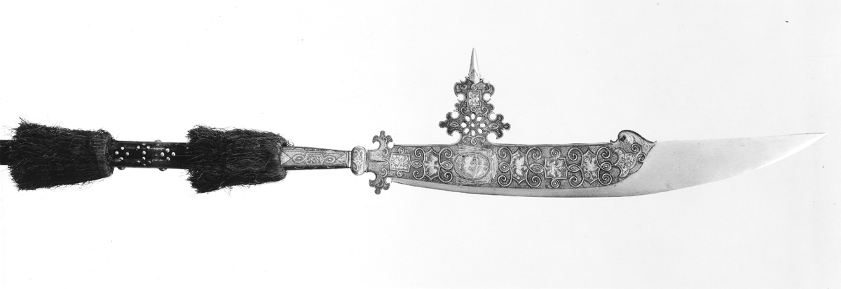 Оружие у кардинала — это уже странно. А если оно ещё и с бархатом, гербами и тайными символами? Парадный клинок гвардии кардинала Боргезе хранил больше, чем блеск и статус. Почему церковному сановнику понадобилось оружие? И что пряталось в орнаментах стали? В начале XVII века Рим переживал период политических изменений и культурного расцвета. Кардинал Сципионе Боргезе, племянник Папы Павла V, был не только влиятельным церковным деятелем, но и страстным коллекционером искусства. Среди его многочисленных приобретений особое место занимал фошард — древковое оружие, предназначенное для его личной гвардии. Созданный около 1605 года, этот фошард представляет собой выдающийся пример итальянского оружейного искусства. Его клинок, длиной около 89 см, изготовлен из стали и украшен сложной гравировкой, золочением и инкрустацией серебром. На нём изображены гербы семьи Боргезе, папская тиара с ключами Святого Петра, а также другие символы, подчёркивающие статус и власть кардинала. Древко оружия, по