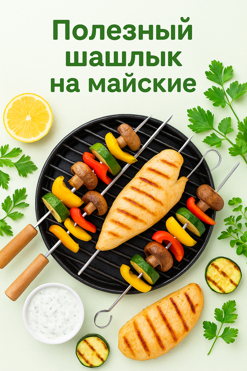 1. Выбирайте нежирные сорта мяса • Отдавайте предпочтение куриной грудке, индейке, постной свинине или говядине. • Избегайте жирных частей, таких как свиная шея или рёбра. 🥩 + 🐓 = здоровый выбор! 2. Используйте маринады на основе натуральных ингредиентов • Маринуйте мясо в лимонном соке, йогурте, травах и специях. • Избегайте маринадов с маслом, сахаром и майонезом. 🍋 + 🌿 = вкус без лишних калорий 3. Готовьте на гриле без добавления масла • Не смазывайте мясо маслом перед жаркой. • Используйте решётку или шампуры, чтобы жир стекал, а не впитывался. 🔥 + без масла = меньше калорий 4. Контролируйте порции • Оптимальный размер — 120–150 г мяса на человека. • Добавляйте больше овощей, чтобы насытиться без лишнего. ⚖️ + 🥗 = баланс и сытость 5. Используйте альтернативы традиционному шашлыку • Делайте овощные шашлыки: перец, кабачки, баклажаны, грибы. • Добавляйте морепродукты — низкокалорийно и полезно. 🍢 + 🦐 = разнообразие на мангале С чем лучше подавать шашлык, чтобы сох