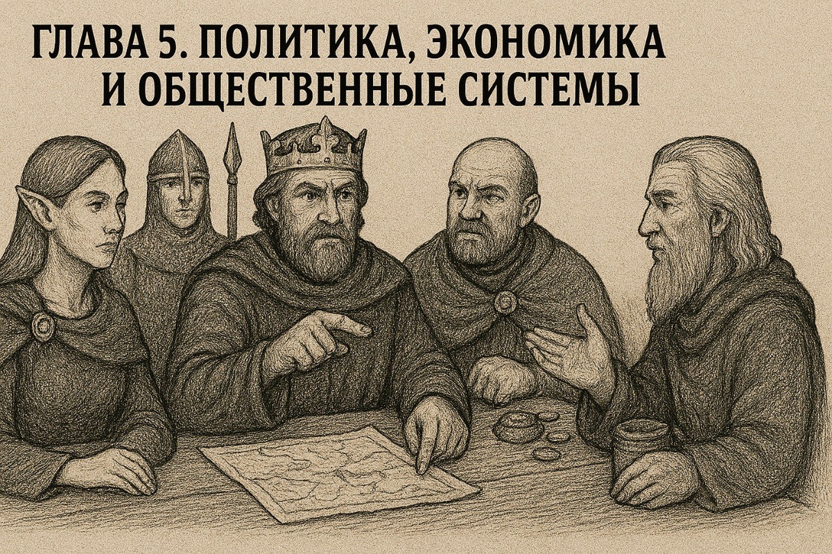 Модуль 5: Политика, экономика и общественные системы https://author.today/reader/444402/4137267 5.1. Типы правления: монархия, республики, советы магов и прочие формы власти. 5.2. Государственные структуры и уровень жизни: кто собирает налоги и куда они уходят. 5.3. Торговля и ресурсы: ключевые источники богатства и торговые пути. 5.4. Влияние этих факторов на сценарий: как использовать экономику в сюжете. Юрий Тихомиров. Подземелья и Вопросы: Как придумывать Миры?