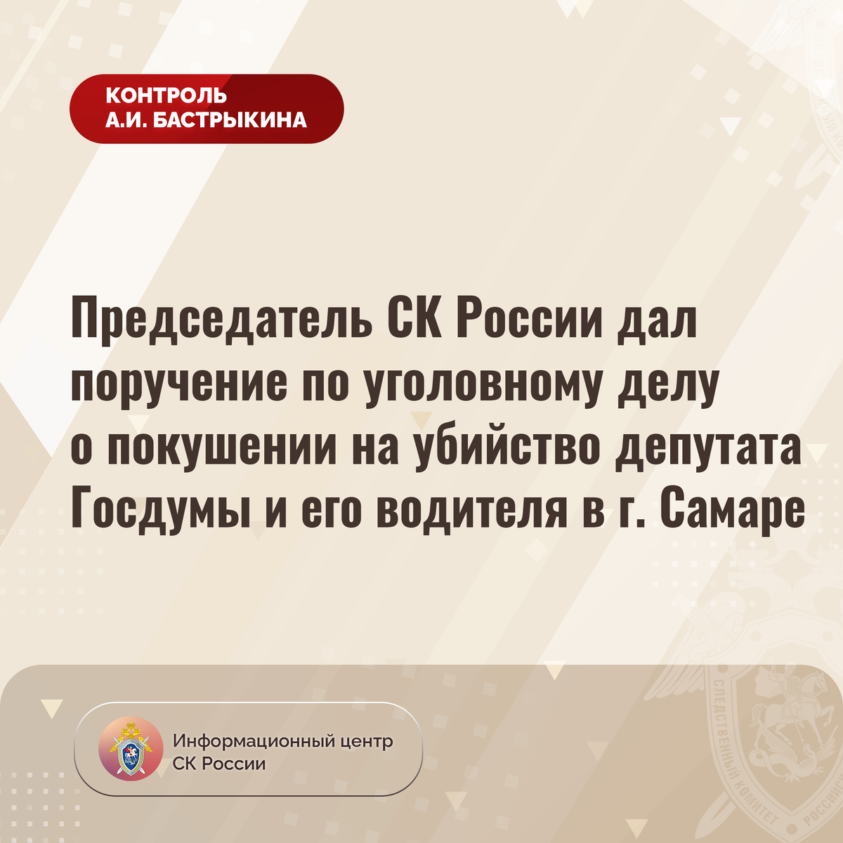 Председатель СК России дал поручение по уголовному делу о покушении на убийство депутата Госдумы и его водителя в г. Самаре