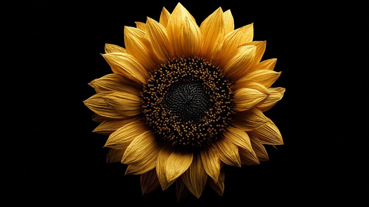 Создано на основе запроса: top-down view of a single photorealistic sunflower, fully visible and perfectly centered in frame, facing directly toward the camera, no petals cropped, dark black studio background, dramatic rim lighting wrapping around the flower’s edges, soft ambient shadows beneath, ultra-detailed textures on petals and seeds, cinematic studio composition, minimal and elegant --- Автоперевод: Вниз вниз по визу одного фотореалистического подсолнечника, полностью видимого и идеально сосредоточенного в раме, обращенной непосредственно к камере, без укороченных лепестков, темно-черный студийный фон, драматическое освещение обода вокруг краев цветов, мягкие окружающие тени внизу, ультра-хранение текстуры на лепестках и семенах, кинематографическая студия, минимума и элегант Хорошо получилось? 🤔 https://dzen.ru/id/65c0c65c86e4f837c27b24d7 #ИИ #AI #нейросеть #midjourney #art