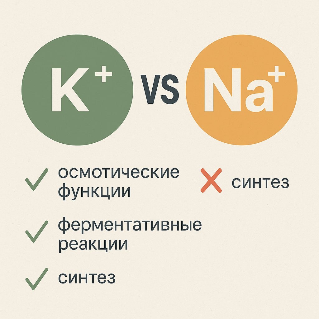 Натрий вместо калия? Частичная подмена с нюансами 🌾 В условиях калийного дефицита или на засолённых почвах у растений может появиться неожиданный «помощник» — натрий (Na⁺). Он действительно может временно заменить калий (K⁺) в некоторых физиологических функциях, но не без последствий. Натрий способен частично замещать калий в осмотических процессах, помогая поддерживать тургор клеток и водный баланс. Однако, в отличие от калия, натрий не участвует в ферментативных реакциях, не активирует ферменты и не влияет на синтез белков или крахмала. 📉 К чему это приводит: — Рост может быть внешне нормальным, — но качество урожая снижается — например, падает содержание сахаров, крахмала, витаминов, — у плодовых и корнеплодных культур ухудшаются вкусовые характеристики и лежкость. 🔍 Особенно важно: На солонцеватых и засолённых почвах, где натрий часто доминирует, необходимо строго контролировать соотношение K⁺/Na⁺. Переизбыток Na может вызвать физиологическое "вытеснение" калия и ухудшение п