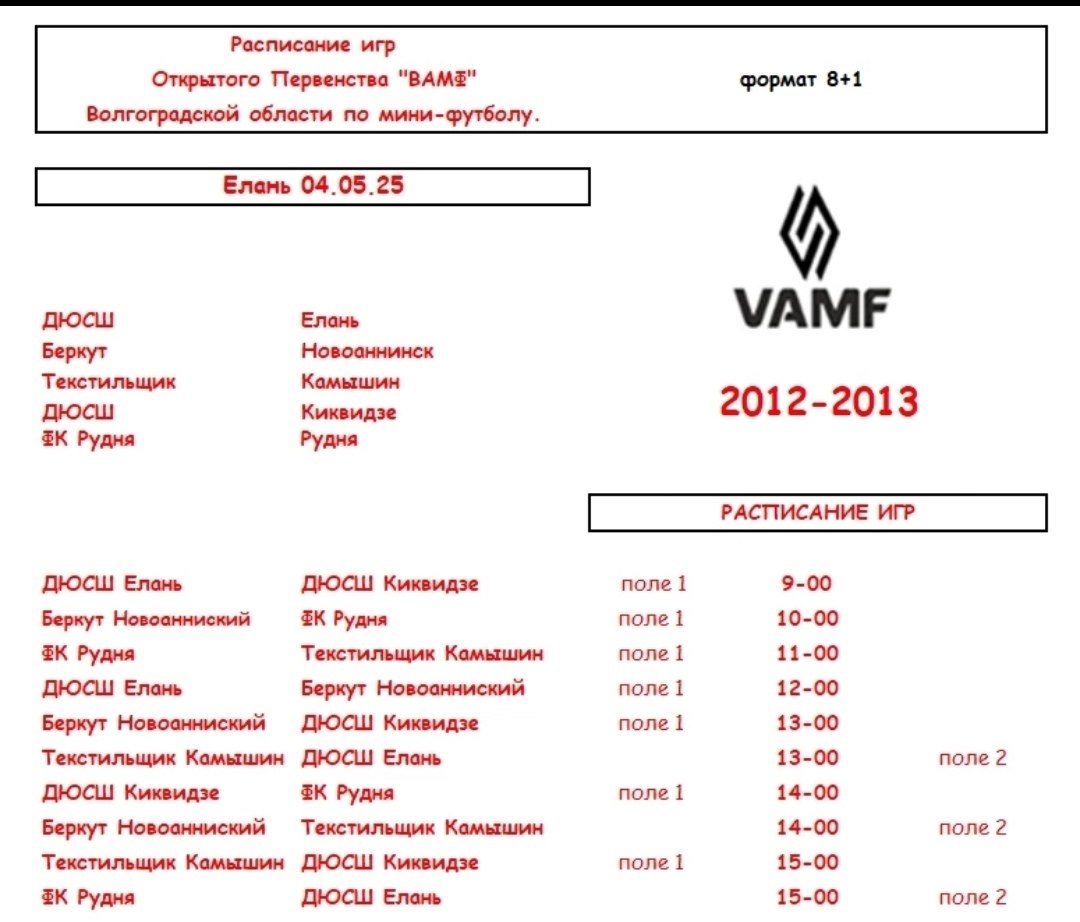 Болеем за наших футболистов⚽️ На стадионе Еланской ДЮСШ завтра пройдут игры Открытого первенства Волгоградской области по мини-футболу "ВАМФ" (формат 8+1) среди футболистов 2012-2013 г.р. Играют команды Еланской ДЮСШ, Киквидзе, Новоаннинского, Камышина, Рудни. Начало соревнований в 9:00 ⚽️Поддержим наших мальчишек!⚽️