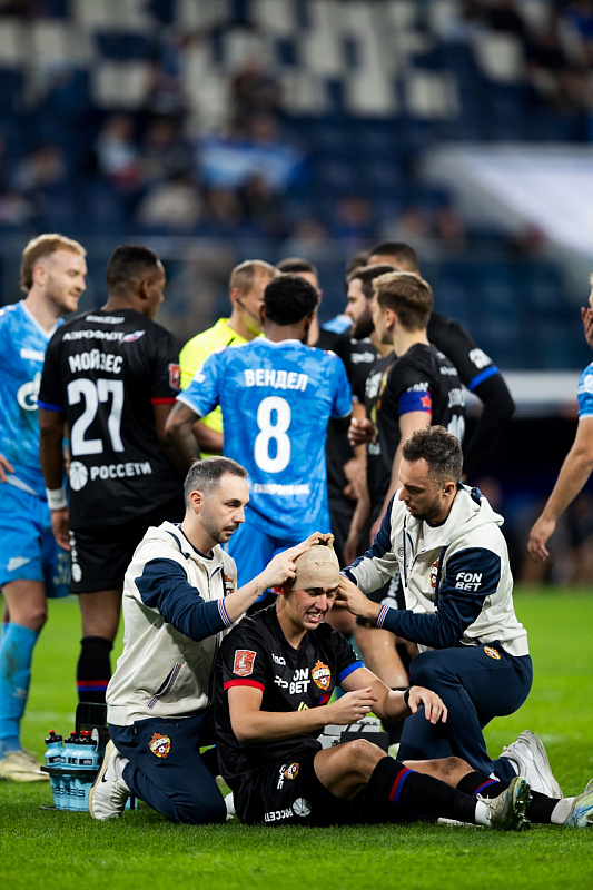 — Матвей, привет. Жаль, что такой результат. Расскажи, что получилось, что нет. — Не получился результат. Я считаю, что мы сегодня моментами очень неплохо играли, контролировали мяч и пропустили такие достаточно ненужные голы. Особенно первый. Три-четыре рикошета. И уже пришлось как-то менять игру. Но обидно, что проиграли, но я думаю, что мы вернемся. — Расскажи по этому столкновению, что там было с твоей точки зрения. — Ну, я сыграл мяч, выбил, а дальше уже, если честно, не помню. Получил удар и чуть-чуть там поплыл, пару минут, вот. И пошла кровь, там перевязали. В целом нормально все. —Что-то похожее было когда-нибудь в жизни? — Нет, впервые. Впервые такое состояние. — И каково, когда тебе прям после матча зашивают голову? — Да на самом деле это не так важно. Конечно, обидно, что не выиграли сегодня. Если бы выиграли, конечно, можно было бы немножко порадоваться, что выиграли но ничего — Да ладно, швы украшают мужчин — 100% — Как оценишь шансы во втором матче? Первый 2- 0, проиграл