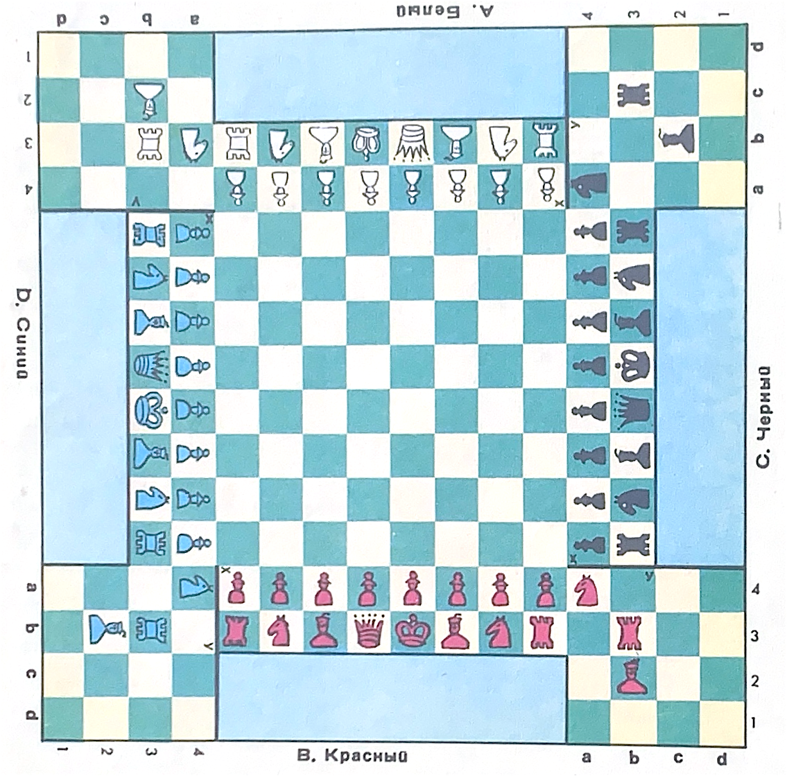 У нас речь пойдёт о так называемых четверных шахматах.