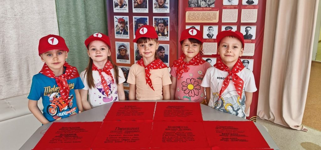 Акция «Полотно Победы» — это не просто мероприятие, а важный исторический акт, позволяющий сохранить память о величайшем событии XX века — Победе советского народа в Великой Отечественной войне. Эта инициатива помогает каждому участнику почувствовать причастность к героическому наследию и проявить уважение к ветеранам, чьё мужество обеспечило нашему поколению жизнь в свободном государстве. Участие в акции приняли все школы и детские сады нашего района, став одним целым грандиозного проекта. Суть акции заключается в создании единого полотна, состоящего из множества отдельных фрагментов, выполненных руками детей и педагогов. 165 лоскутков ткани содержат надписи, воспоминания и рисунки, отображающие судьбу семей участников Великой Отечественной войны. Красные лоскуты ткани символизируют кровь, пролитую нашими соотечественниками на полях сражений, а также олицетворяют общую боль, радость побед и единство нации. Надписи, оставленные детьми, рассказывают личные истории близких родственников,