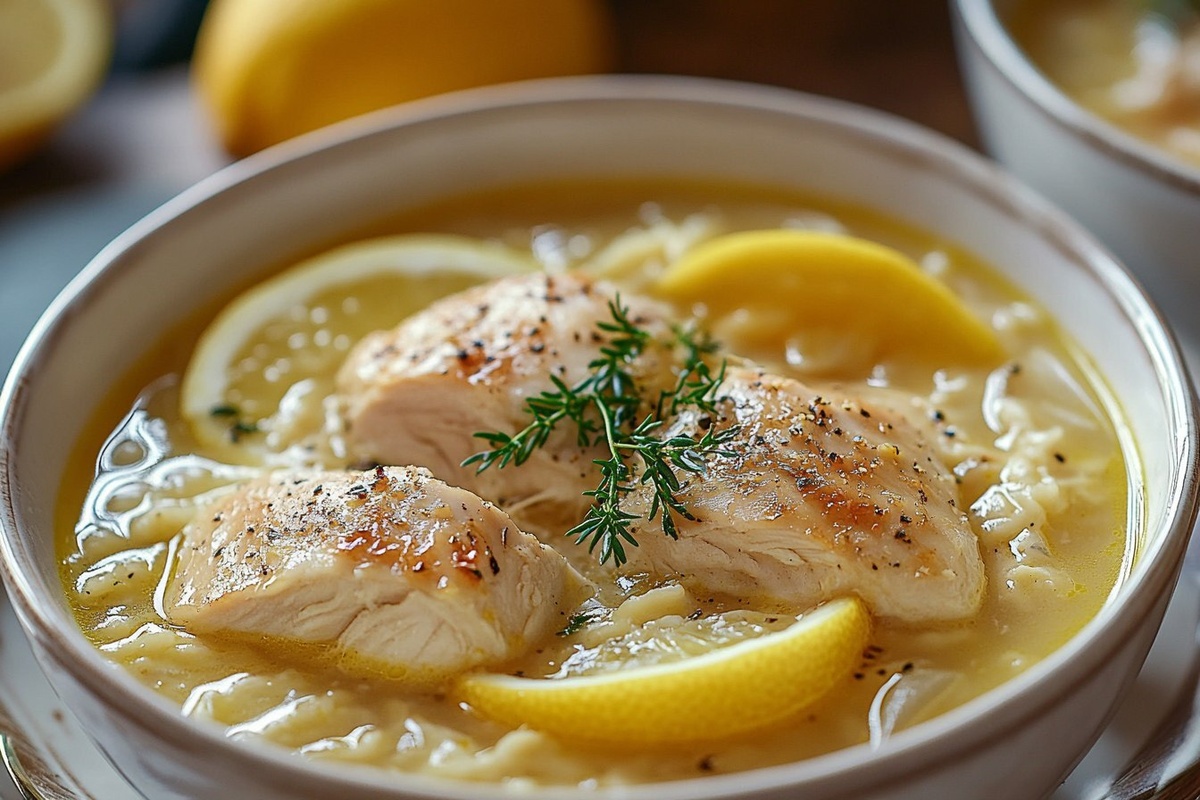 Создано на основе запроса: | Title: GREEK LEMON CHICKEN SOUP | STYLE: Close-up Shot right view | EMOTION: realistic as possible | SCENE