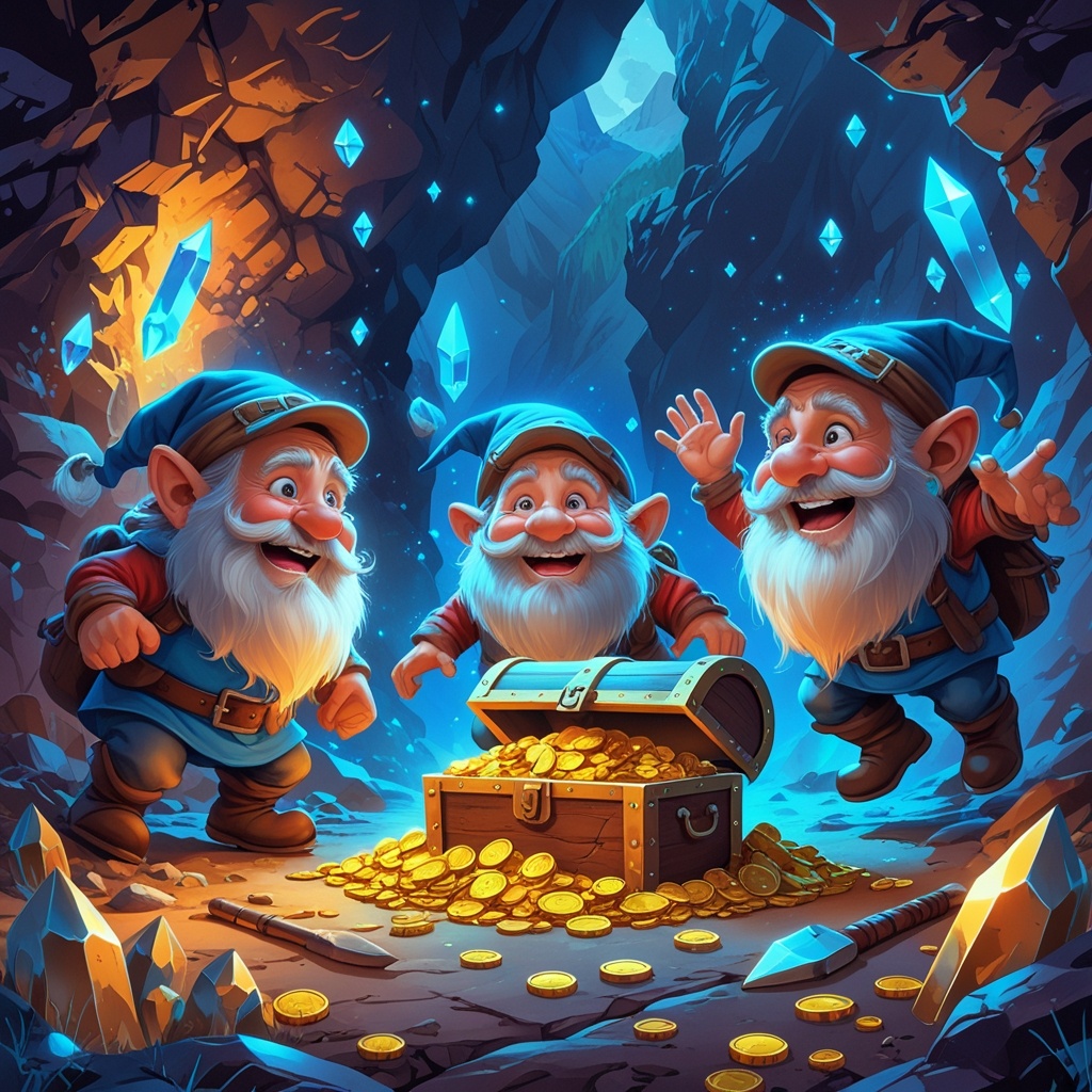В далекой горной долине, где реки сверкали серебром, а пещеры хранили тайны, жили три брата-гнома: Гримм, Брумм и Шмуль. Все они были мастера на все руки — ковали мечи, добывали самоцветы и славились умением находить сокровища. Но Шмуль, самый младший, отличался не только ловкостью, но и хитрым умом, напоминавшим старого купца с восточных базаров. Его борода была аккуратно подстрижена, а глаза блестели, будто он уже знал, как обернется судьба. Однажды братья, копаясь в заброшенной шахте, наткнулись на сундук, полный золотых монет и сверкающих камней. Гримм и Брумм закричали от радости: «Мы богаты! Пора пировать, строить дворцы, покупать шелка и медовуху!» Но Шмуль, поглаживая бороду, сказал: «Братья, не торопитесь. Золото — это не просто блеск, это сила. Если его сберечь и пустить в дело с умом, оно принесет больше, чем пиры и побрякушки». Гримм и Брумм только посмеялись. «Ты скучен, Шмуль! Зачем копить, если можно жить в свое удовольствие?» — сказали они и, забрав свою долю, отправили