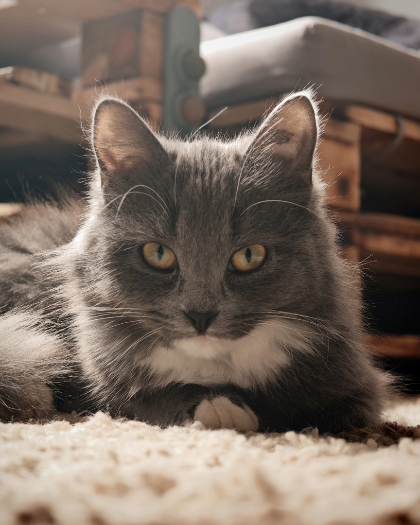 Это не просто кот — это шикарный котяра, и внешне, и по характеру. Персик — душа компании: обожает внимание, радуется мелочам, любит пообщаться и умеет зарядить хорошим настроением всех вокруг. Настоящий пушистый терапевт с харизмой и чувством юмора.