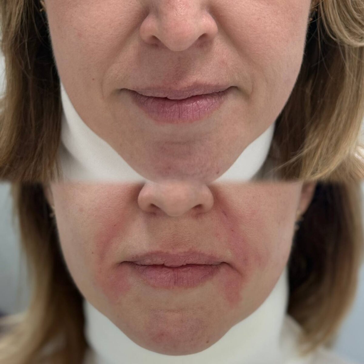 Коррекция носогубной складки филером на основе гиалуроноврй кислоты , ранее пациентка делала у меня коррекцию 3 года назад ! Целых 3 года