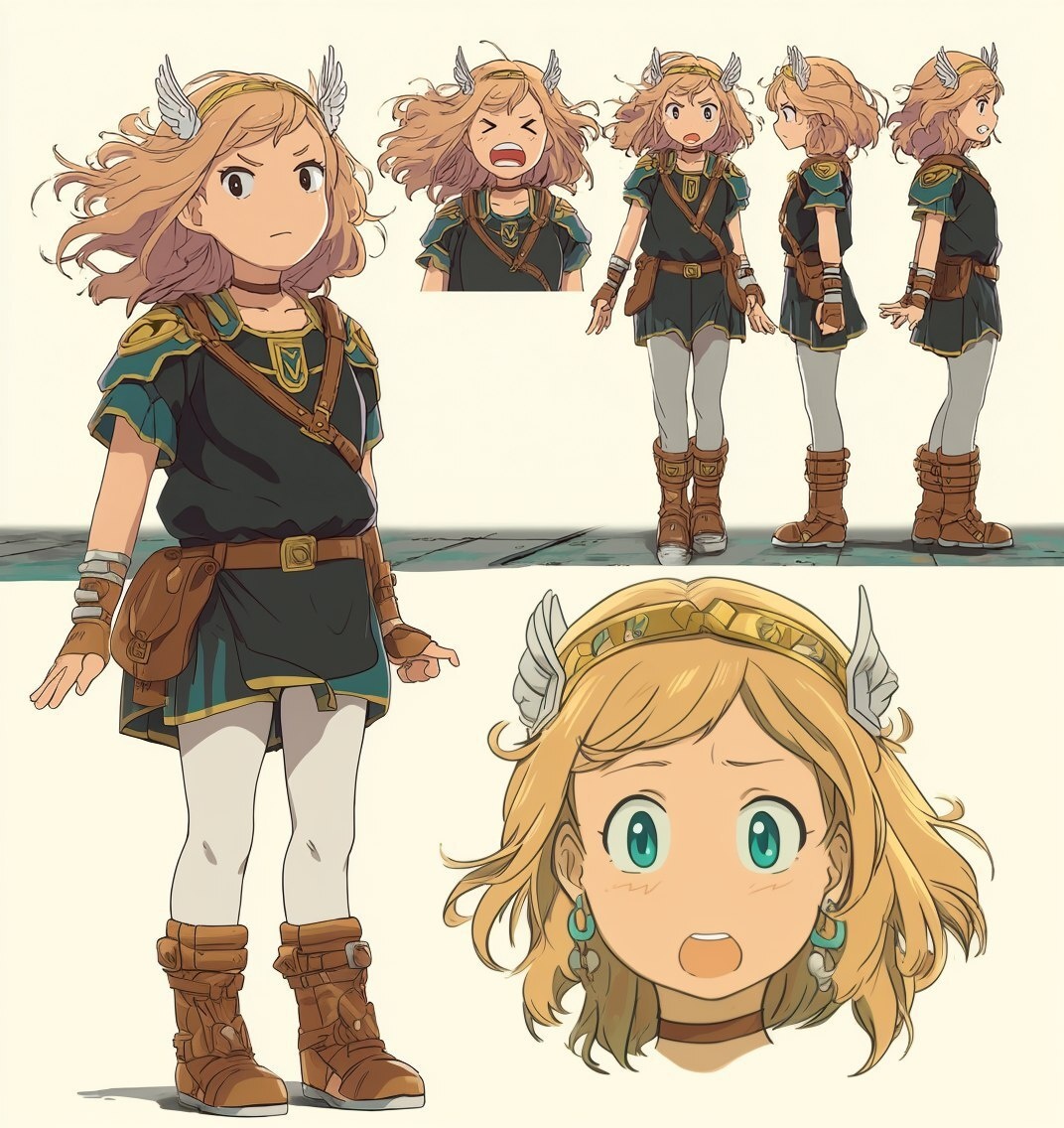 Создано на основе запроса: character sheet of full-body sprites, badass teenage valkyrie, emotional expressions, happy mad laughing panic