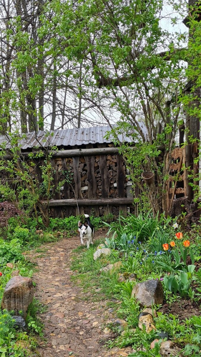 Городской собачке потребовалось совсем немного времени, чтобы адаптироваться в деревне и стать членом дружного коллектива хвостатых обитателей Избушки.