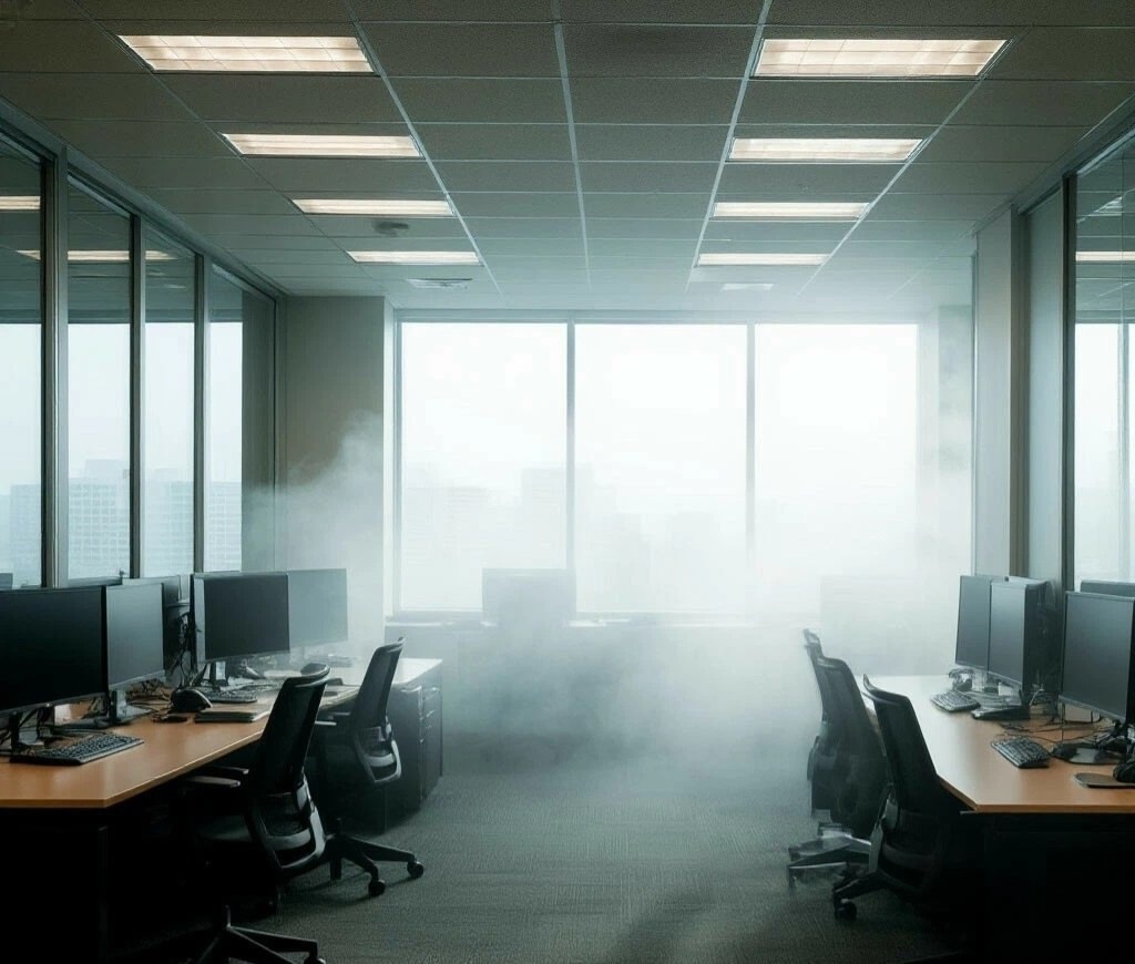 А потом...Потом офис начал заполняться дымкой. Костя пытался разгонять её, но она становилась все гуще и плотнее. И вот уже он не мог видеть ничего дальше вытянутой руки.