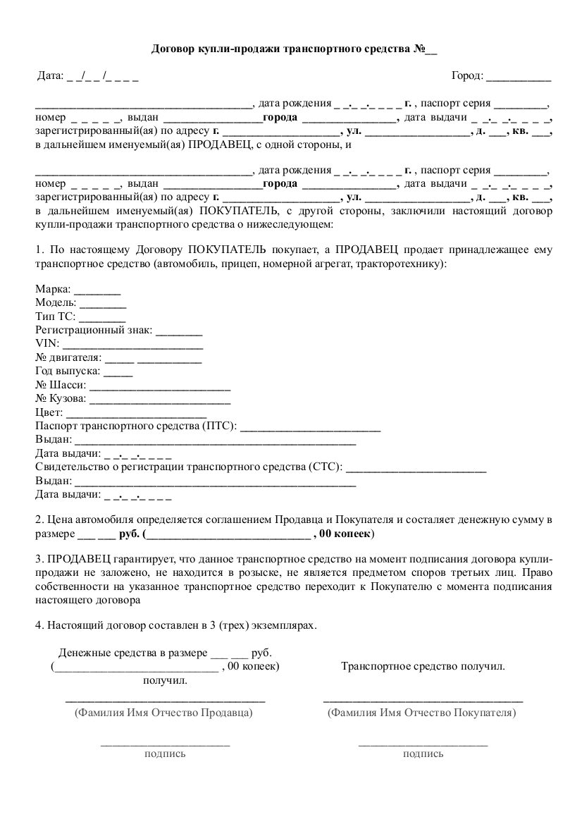 - ДКП автомобиля: Простой документ для передачи машины. Не требует нотариуса, но нужен для регистрации в ГИБДД.