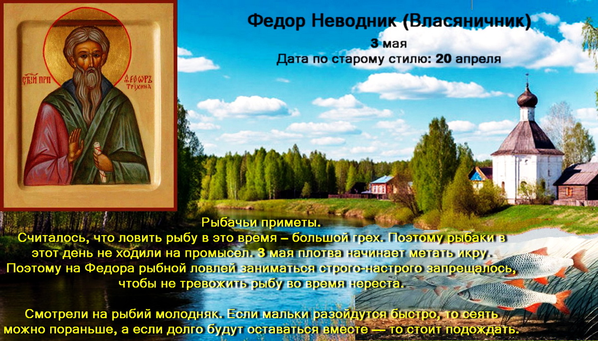 3 мая (Дата по старому стилю: 20 апреля) - Федор Неводник (Власяничник). Окликание предков Рыбацкие приметы