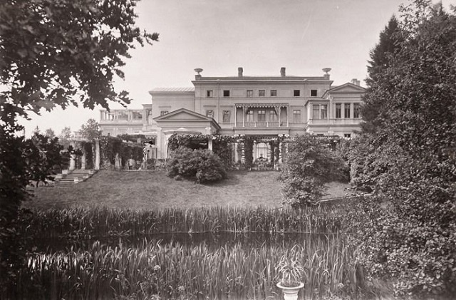 Великий князь (в будущем – наместник Кавказа) есть великий князь. Скромное убежище старой женщины («mon calme”) ему не по чину. На обустройство новой усадьбы были брошены лучшие архитектурные и садоводческие силы империи: Штакеншнейдер, Шарлемань, Боссе, Резанов, Гримм! Дворец со всеми хозяйственными и нехозяйственными пристройками! Церковь святой Ольги!
