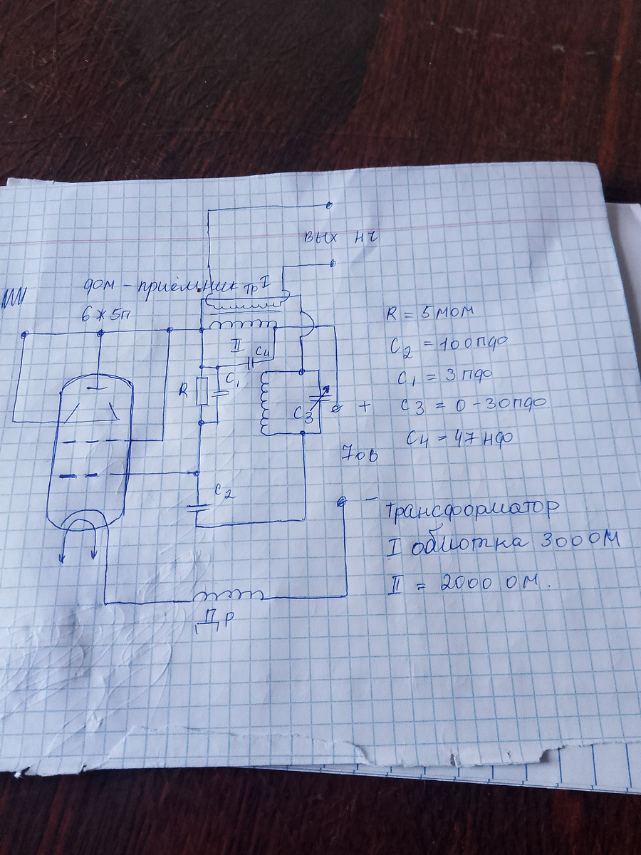 вот по этой схеме я сделал фм приемник.паралельно вторичной обмотке трансформатора подключен конденсатор.он необходим для того что бы рассоеденить высокочастотную составляющею от постоянного напряжения.так как высокоомная вторичная обмотка трансформатора работает как резистор и сильно ослабляет полезный сигнал.а вот и схема.