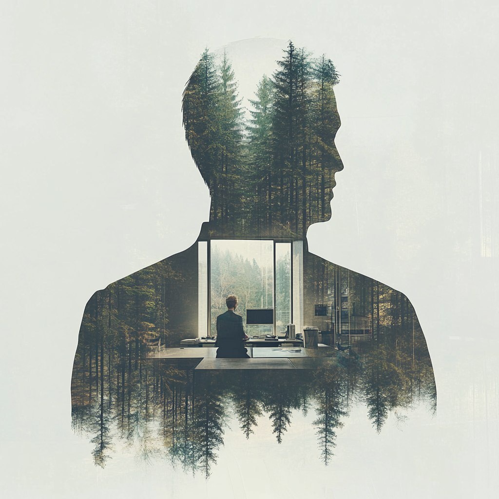 Создано на основе запроса: in the torso in front of the person there is an open window inside the window there is a forest. around him is an office space. in the style of abstract minimalism --- Автоперевод: В туловище перед человеком находится открытое окно в окне, есть лес. Красиво выглядит? 🤔 https://dzen.ru/id/65c0c65c86e4f837c27b24d7 #ИИ #AI #нейросеть #midjourney #art