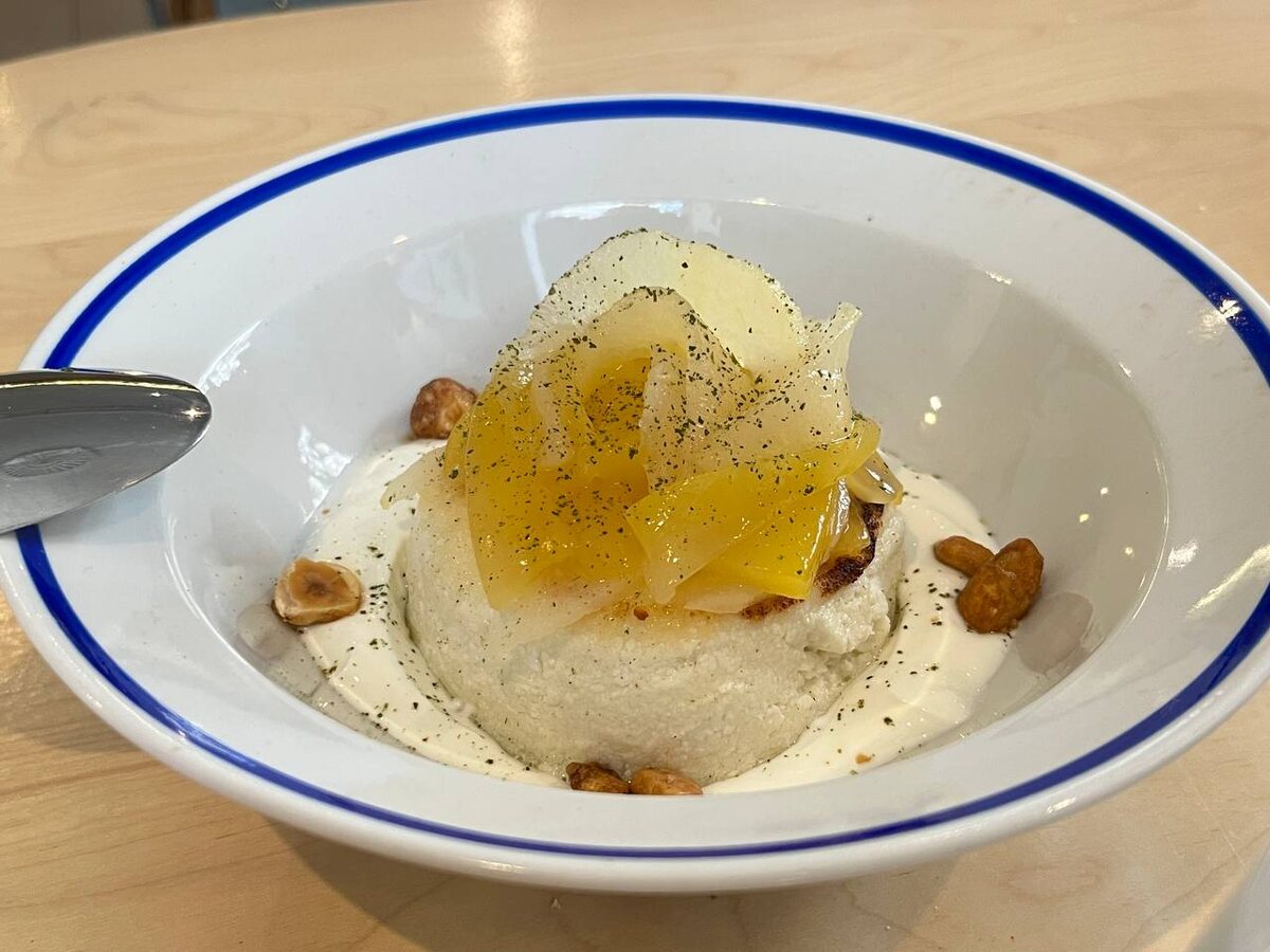 Место: кофейня Ветка (проспект Ленина, 57) Красивый. Нежный. Мощный. Сама позиция не новая: Мега-сырник в Ветке был с момента появления кухни, обновилась подача и добавки. То самое блюдо между «хочу десерт» и «надо держаться в форме». Любители ПП будут пищать от восторга: орехи присутствуют, манго и груша изящными лепестками украшают плато сырника и добавляют свойственной сладости, а греческий йогурт у подножия поддерживает и освежает всю порцию. Вообще, Ветка отличный пример смелых экспериментов с простыми вещами, чему стоит поучится некоторым сеткам. Больше обзоров из Ветки в подборке: тык сюда.