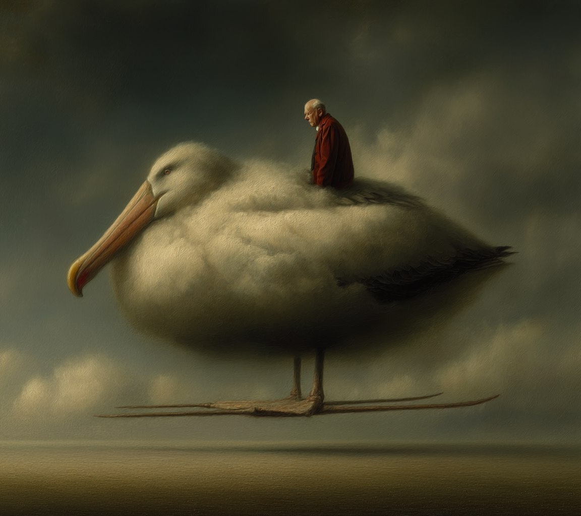 Создано на основе запроса: surrealist art deco, high resolution, oil photography. a man riding an albatross flying above the clouds. Inspired by stephen mackey, magritte, and wes anderson. atmospheric paintings, ethereal, mystical quality, enhanced by vibrant colours and surrealism. High-contrast lighting, chiaroscuro, and high definition. --- Автоперевод: Сюрреалистическое искусство деко, высокое разрешение, нефтяная фотография. Как тебе эта картинка? 🤔 https://dzen.ru/id/65c0c65c86e4f837c27b24d7 #ИИ #AI #нейросеть #midjourney #art