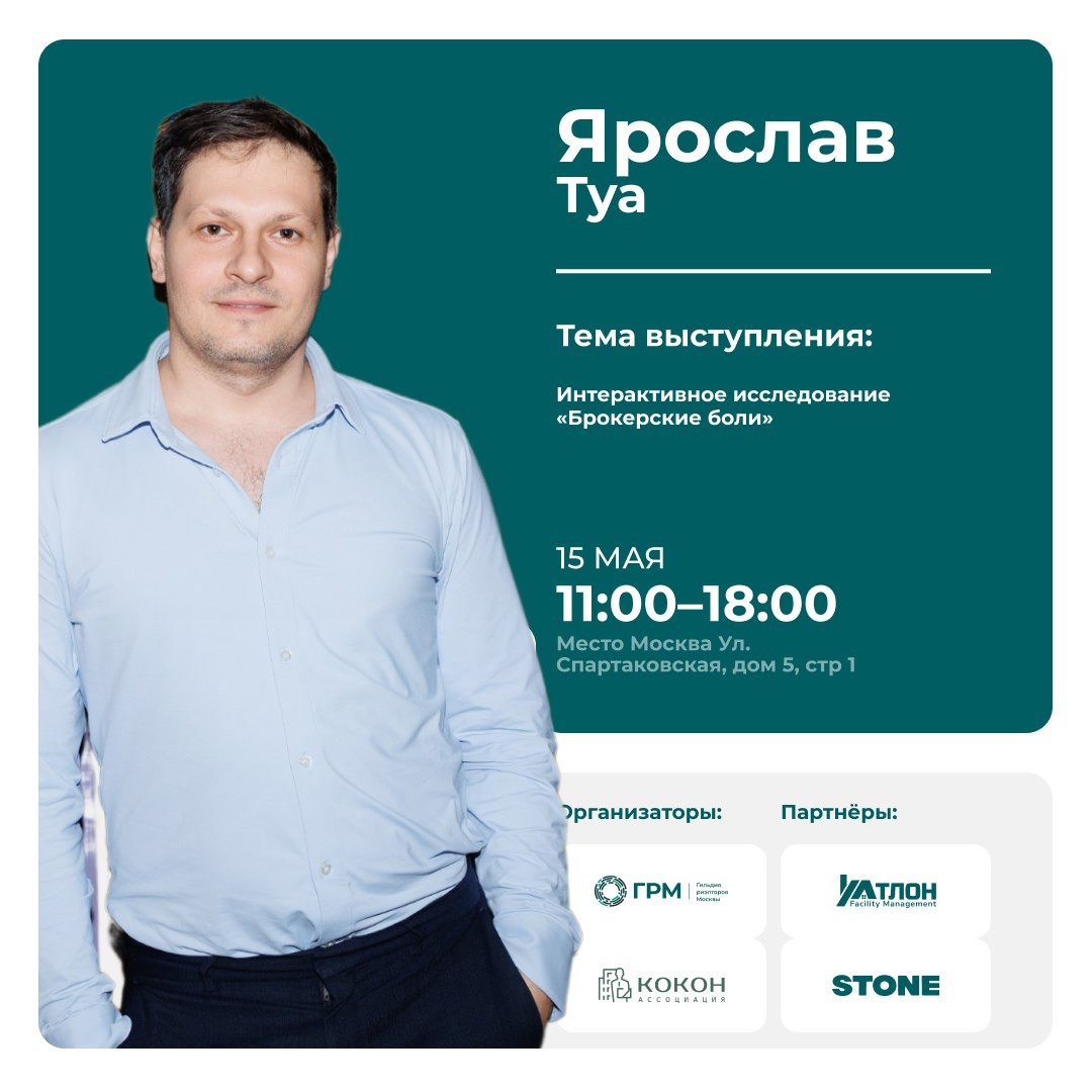 🏖Суббота - это хорошо, а суббота, перед которой уже были выходные, вдвойне хорошо! Регистрация на Конференцию по коммерческой недвижимости 2025 закрыта! ❌ А мы продолжаем знакомство со спикерами, которых вы увидите и услышите уже совсем скоро! 🗣 Ярослав Туа О спикере: Основатель и CEO Индустриального агентства HERZEN, специализирующегося на складской и промышленной недвижимости. Ревизор ассоциации «КОКОН» и признанный эксперт отрасли — его комментарии регулярно публикуются в Forbes, Коммерсантъ, РБК Про, на Business FM и других авторитетных площадках. Муж и отец двоих детей. Атлет. Тема выступления: Интерактивное исследование «Брокерские боли» Разберем все честно и без прикрас!
