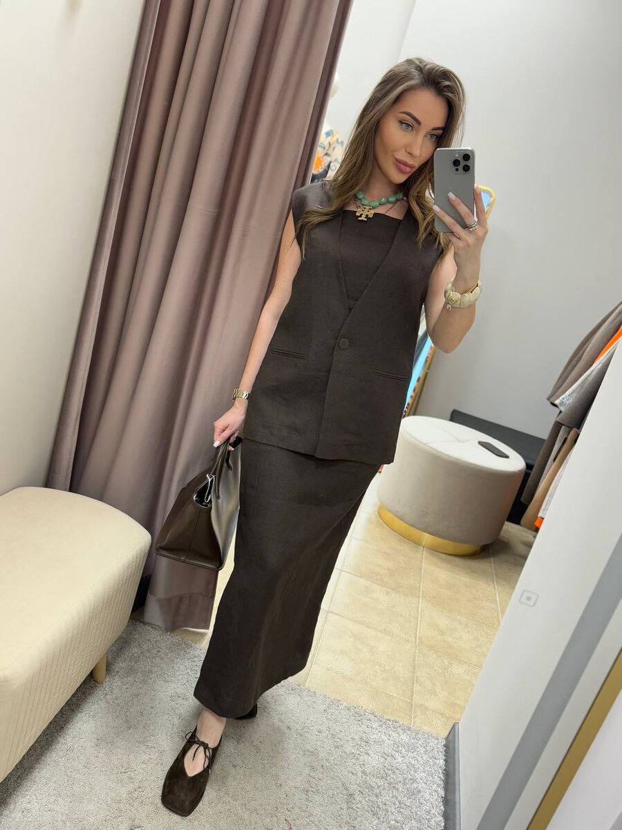 Костюм из льна в оттенке громкий шоколад🤎