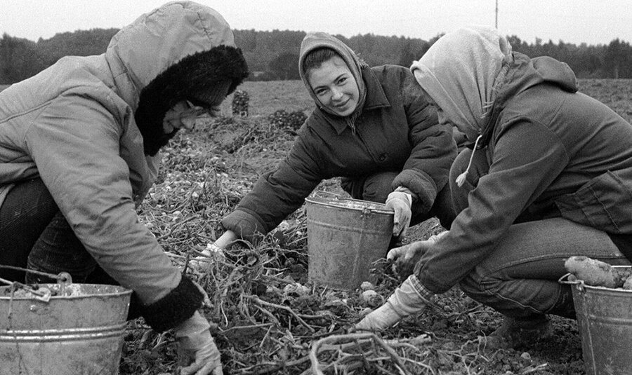 Для первокурсников советских вузов первым взрослым испытанием был выезд на колхозные и совхозные сельскохозяйственные работы, где им предстояло в течение месяца собирать свеклу, морковь, капусту и даже невиданный ранний турнепс. Но главной задачей становился сбор картофеля. Поэтому ежегодный десант городских жителей, призванный помочь осенью справиться со сбором урожая, было принято называть поездкой на картошку. Именно на картошке в студенческих компаниях завязывались долгие годы дружбы, вспыхивала первая любовь, а очкарики и медалисты впервые пробовали портвейн и узнавали значение новых слов и титулов, которыми награждали их деревенские аборигены. Однако усилий будущих инженеров, учителей и врачей для спасения урожая было явно недостаточно. Поэтому советские предприятия, научные и культурные учреждения брали шефство над сельским хозяйством. Неотъемлемой частью повседневной работы стало для них активное и заинтересованное участие в делах сельских хозяев. Так как учёт результатов труда