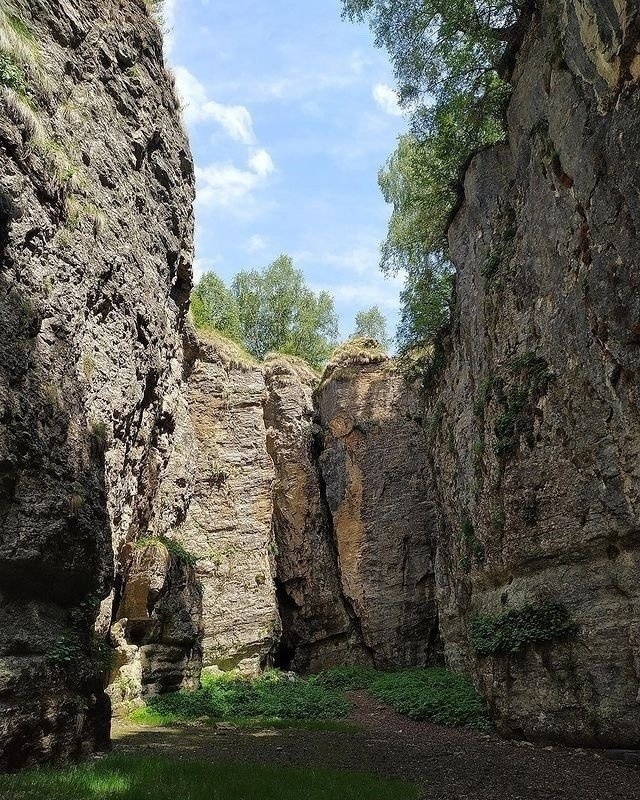 Здесь всегда прохладно и влажно, по скалам стекает вода, а под ногами шуршит листва даже летом. Скалы взмывают вверх на высоту десятиэтажного дома, а узкие проходы создают ощущение таинственности.