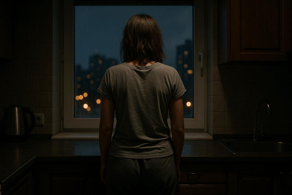 Вечером, когда уставший Кирилл разревелся из-за сломанной игрушки, а Лёша снова закашлялся, Наташа вдруг села на пол и заплакала. По-настоящему, сотрясаясь от рыданий. Дети сначала замолкли, потом испуганно присели рядом.