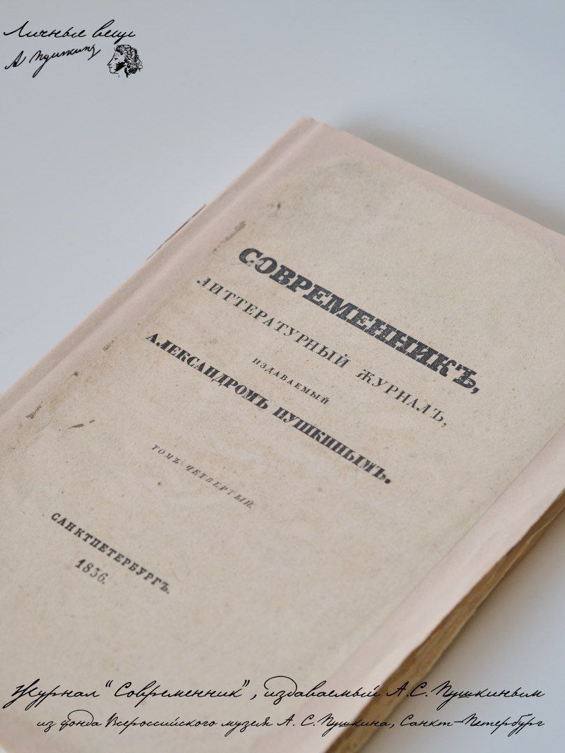 0️⃣1️⃣2️⃣ Журнал «Современник», основанный А.С. Пушкиным , в проекте Digital Opera Saint-Petersburg VR-экспозиции «Личные вещи Пушкина». В апреле 1836 года увидел свет первый номер журнала «Современник. Издание выходило в Петербурге в 1836-1866 годах, сначала 4 раза в год, с 1843 — ежемесячно. Журнал был основан А. С. Пушкиным, издавшим в 1836 году 4 книжки журнала. Поэт лично подготовил к печати первые 5 томов (5-й том вышел уже после его смерти). В журнале печатались произведения Н.В. Гоголя, В.А. Жуковского, П.А. Вяземского, В.Ф. Одоевского, Д.В. Давыдова, Н.М. Языкова, Е.А. Баратынского, Ф.И. Тютчева, А.В. Кольцова. Сам Пушкин также публиковал здесь стихи, прозу, критические, исторические, этнографические и другие материалы. В пушкинском „Современнике“ были опубликованы „Пир Петра I“, „Скупой рыцарь“, „Рославлев“, „Из А. Шенье“, Путешествие в Арзрум», «Родословная моего героя», «Джон Теннер», «Капитанская дочка» и другие произведения поэта. После смерти поэта его друзья изо всех